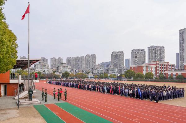 身着正装的国旗护卫队,迈着铿锵有力的步伐,整齐有序地护送国旗入场。伴随着《义勇军进行曲》的奏响,鲜艳的五星红旗冉冉升起,典礼正式拉开帷幕。全校师生肃立行注目礼,齐唱国歌,表达了对祖国的热爱和对未来的无限憧憬。