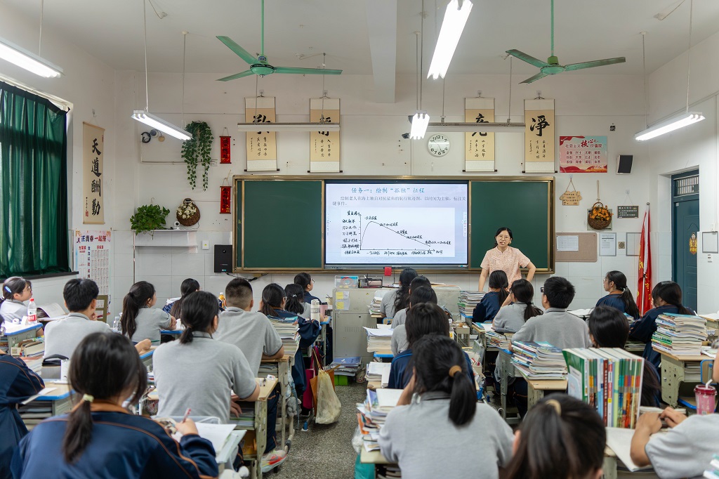 随后,调研专家分赴各班级听课,覆盖语文、数学、物理、化学等核心学科。语文课堂上,平苹老师通过生动的讲解,培养学生的阅读鉴赏能力,学生们分享自己的阅读感悟;戴荧荧老师通过歌曲《孤勇者》的导入,瞬间吸引了学生的注意力,学生们纷纷沉浸在对小说主题的深入思考中。数学课堂上,杨凤平老师执教《直线的点斜式方程》,将数学知识的传授与数学思维能力的培养融为一体,让学生逐渐掌握运用点斜式方程解决实际问题的方法,逻辑思维得到了有效锻炼;童佳浩老师执教《函数恒成立问题》,一题多解,将复杂的思维过程可视化,帮助学生构建清晰的逻辑框架。