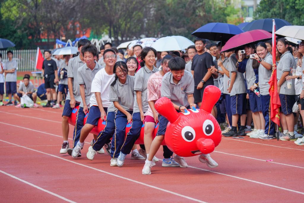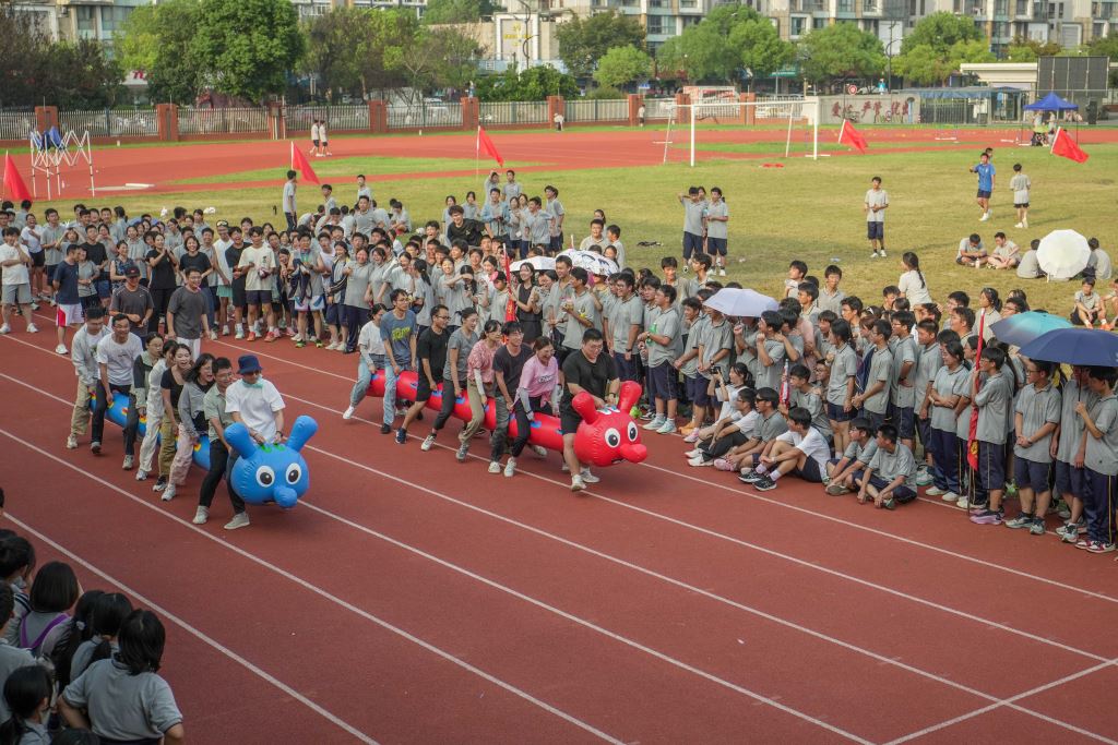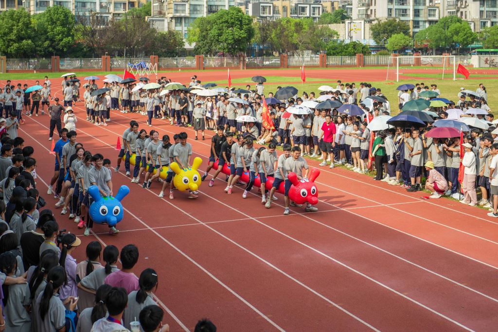 除了紧张激烈的竞技项目,趣味运动毛毛虫比赛也给大家带来了无尽的欢乐。同学们骑在毛毛虫道具上,齐心协力地向前冲。有的队伍配合默契,毛毛虫像装了小马达一样快速前进;而有的队伍则状况百出,毛毛虫东倒西歪,引得周围同学哈哈大笑。这场比赛没有输赢,只有满满的欢乐和温馨,让同学们在紧张的比赛之余,感受到了运动的别样乐趣。