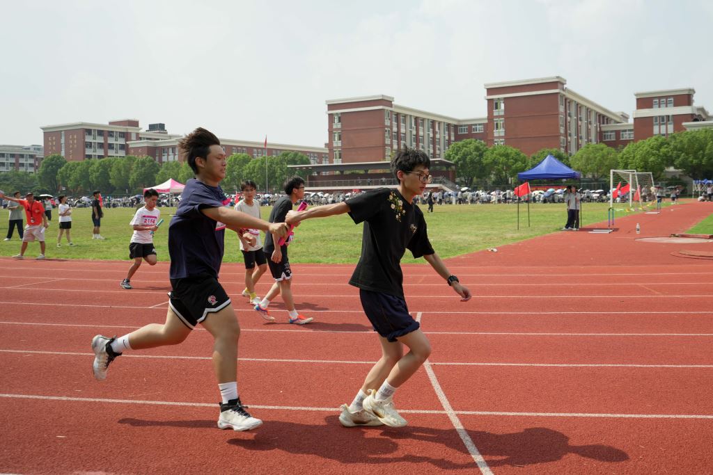 接力赛无疑是运动会上最激动人心的项目之一。各班的选手们紧密配合,交接棒的瞬间紧张而又刺激。第一棒的同学如猛虎下山,快速冲了出去,把接力棒稳稳地交到第二棒同学手中。第二棒同学接过棒后,立刻加速,像一阵风似的向前飞奔。每一个交接,都凝聚着团队的信任和默契;每一次冲刺,都展现着团结的力量。当最后一棒同学冲过终点线时,整个班级都沸腾了,欢呼声、呐喊声震耳欲聋。