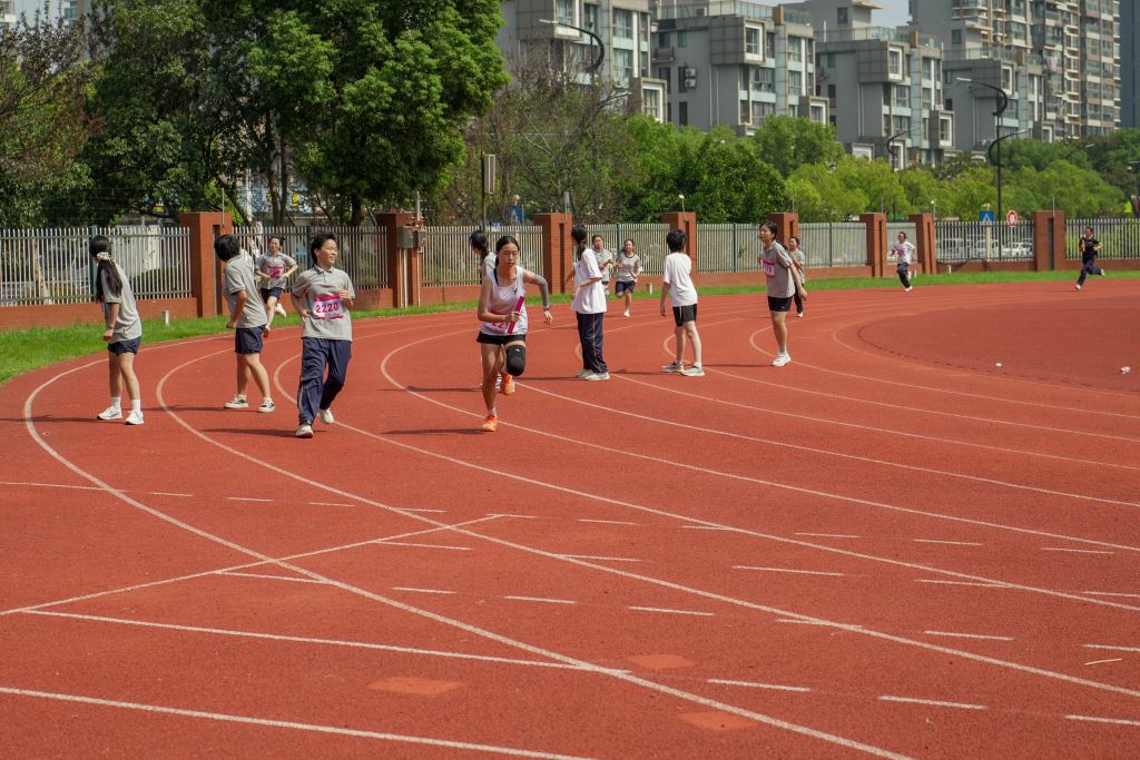 1500 米赛道上,是一场毅力的较量。选手们一开始都保持着稳定的节奏,随着路程的增加,体力逐渐消耗,但没有人放弃。他们咬紧牙关,一步一步地向前跑着,汗水湿透了衣衫,但眼神依然坚定。有的同学虽然落在了后面,但依然坚持跑完全程,赢得了全场观众的点赞和掌声。这不仅仅是一场长跑比赛,更是一次对自我意志的考验。