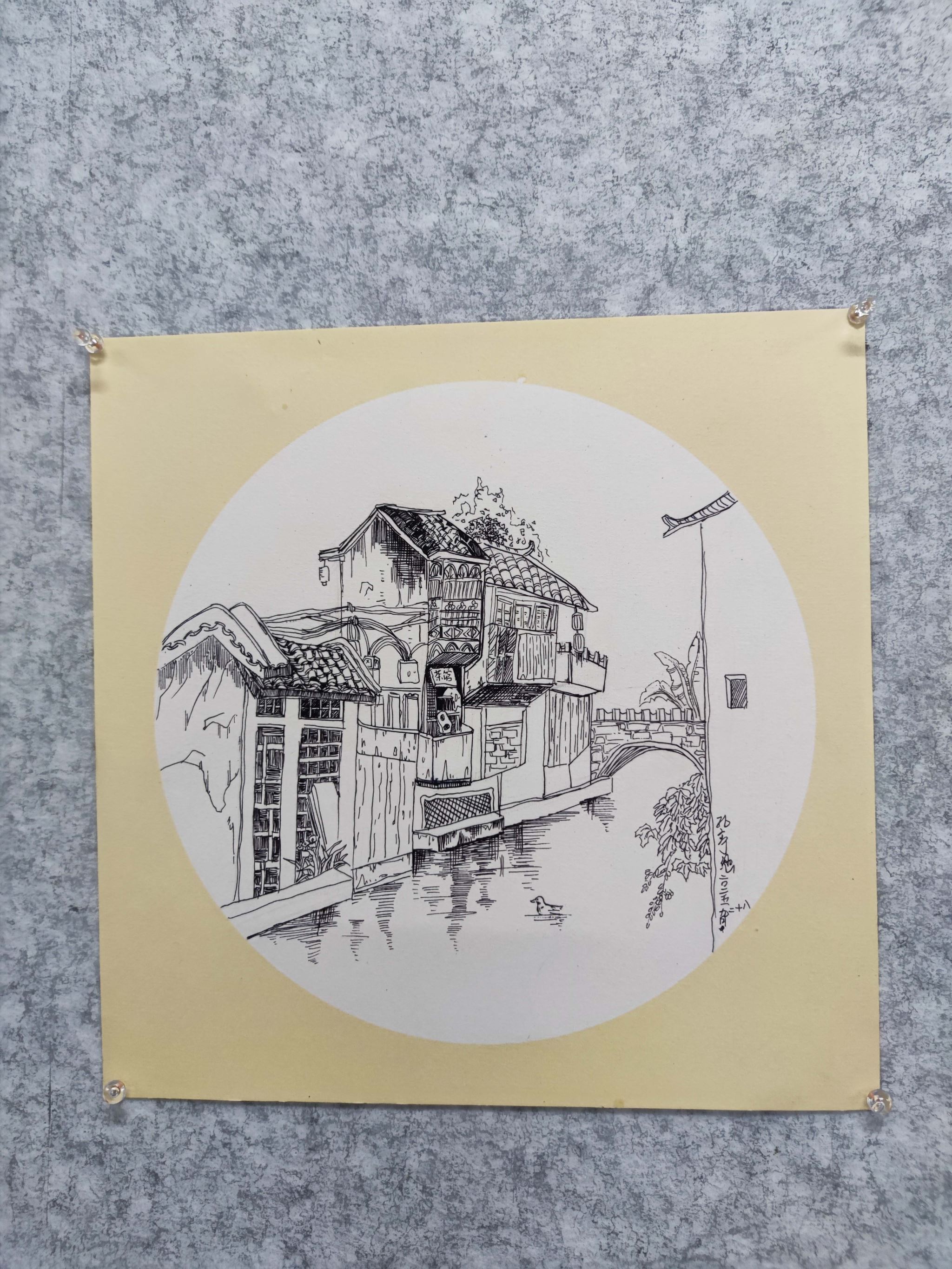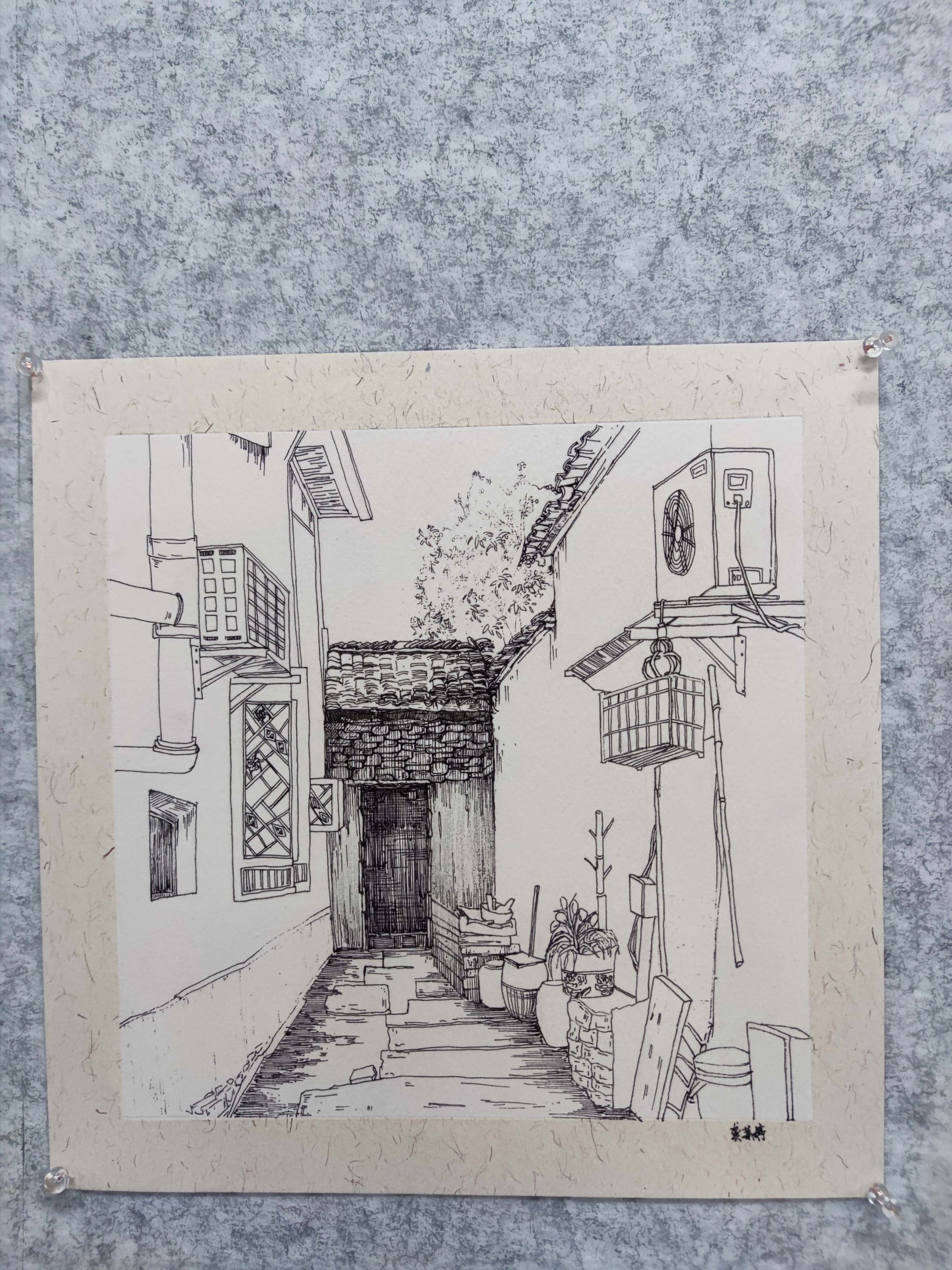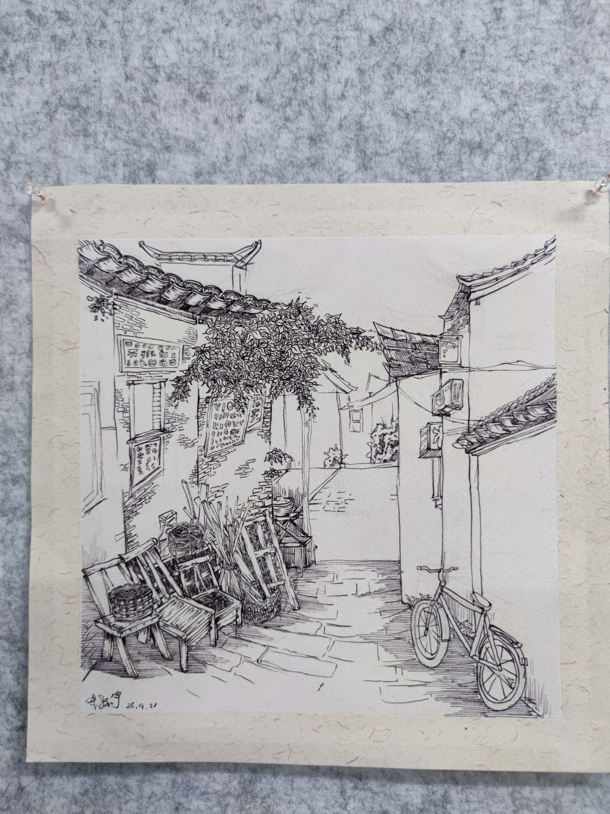暮色降临,同学们满载而归。翻阅一张张画作,古镇的韵味在笔下尽显:有的作品以精准的透视关系展现古巷的幽深,有的通过细腻的细节刻画还原老宅的沧桑,还有的凭借巧妙的虚实处理营造出朦胧的诗意。