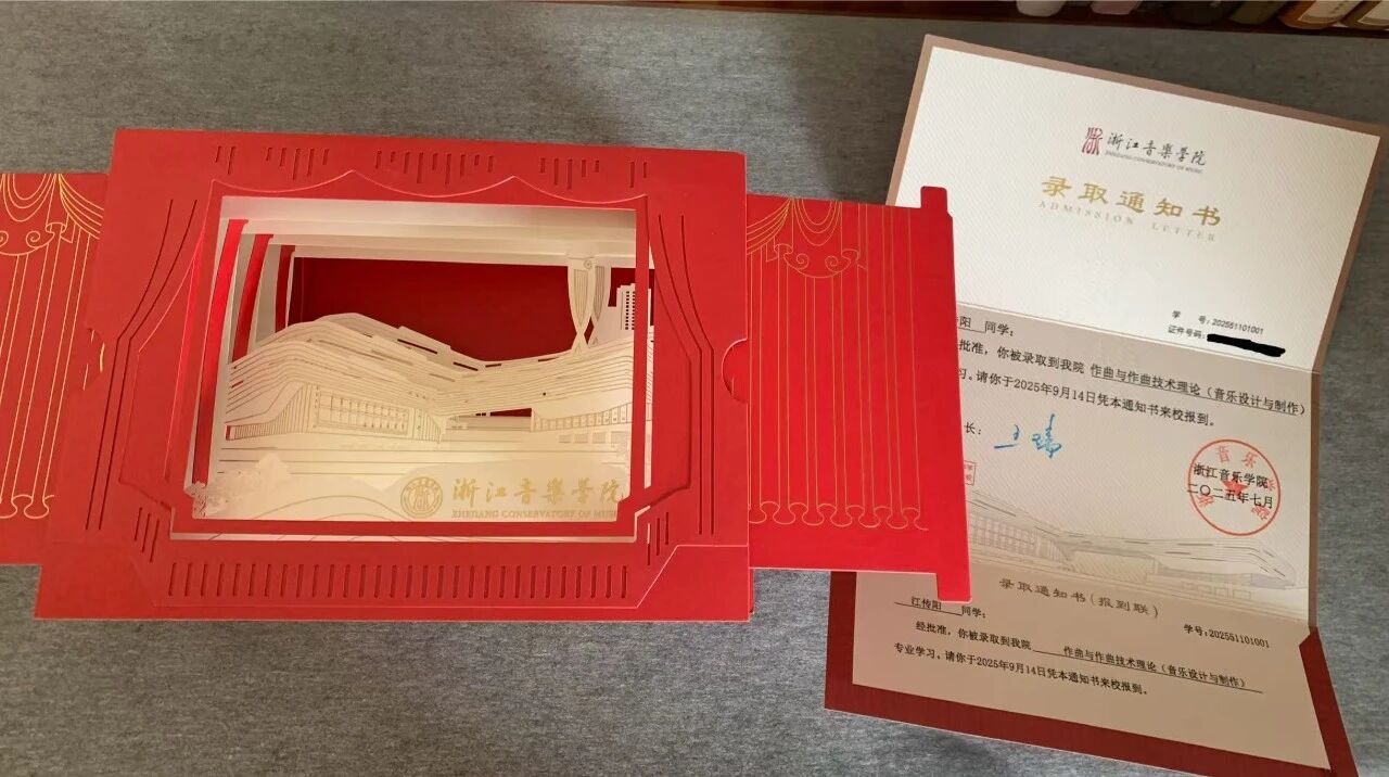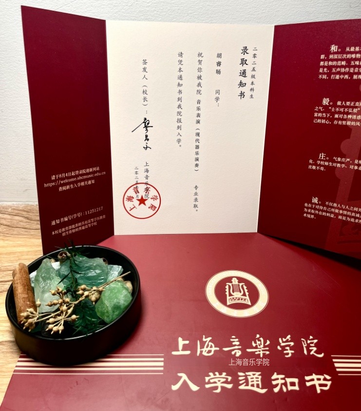 琴房里,曾回荡他们无数次重复的音阶;谱架上,曾铺满密密麻麻的批注与修改;指尖在琴弦上磨出的薄茧,喉间为找准音准反复练习的沙哑,都是逐梦路上最清晰的注脚。从基础的音阶琶音到复杂的协奏曲,从单薄的哼唱到和声的交融,他们用旋律与世界共鸣,用歌声表达心声。每一封录取通知书的背后,都是无数个清晨的练声、深夜的练琴,是对“乐”不懈追求的执着。