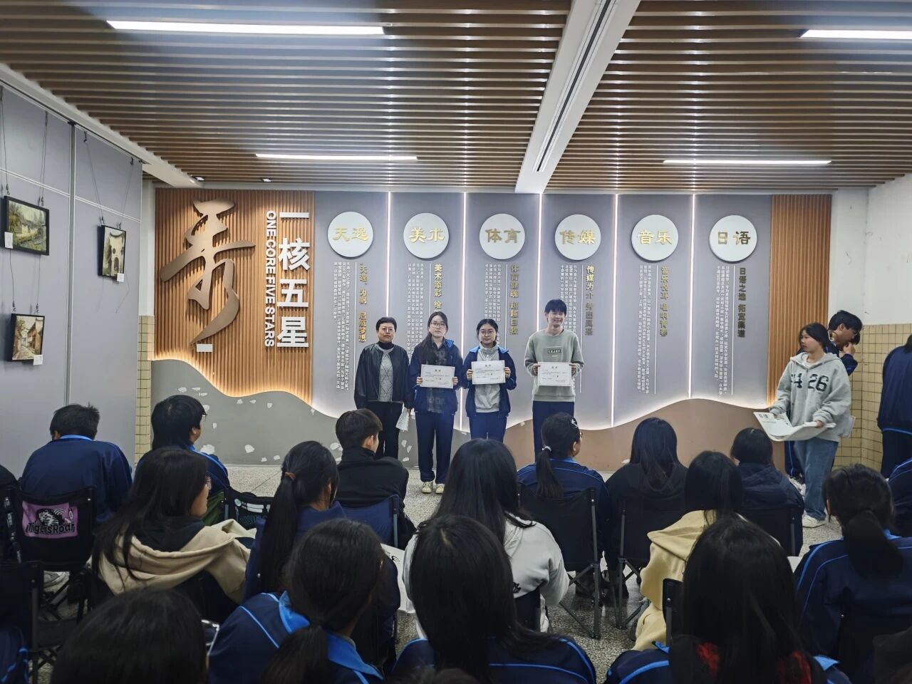 颁奖环节中,校领导与美术教师共同为获奖学生颁发荣誉证书,对他们在写生比赛中展现出的专业素养、创新思维及认真严谨的创作态度给予了高度评价。这些作品不仅是对自然美景与生活瞬间的生动捕捉,更是学生们日复一日刻苦练习、不断精进技艺的见证。