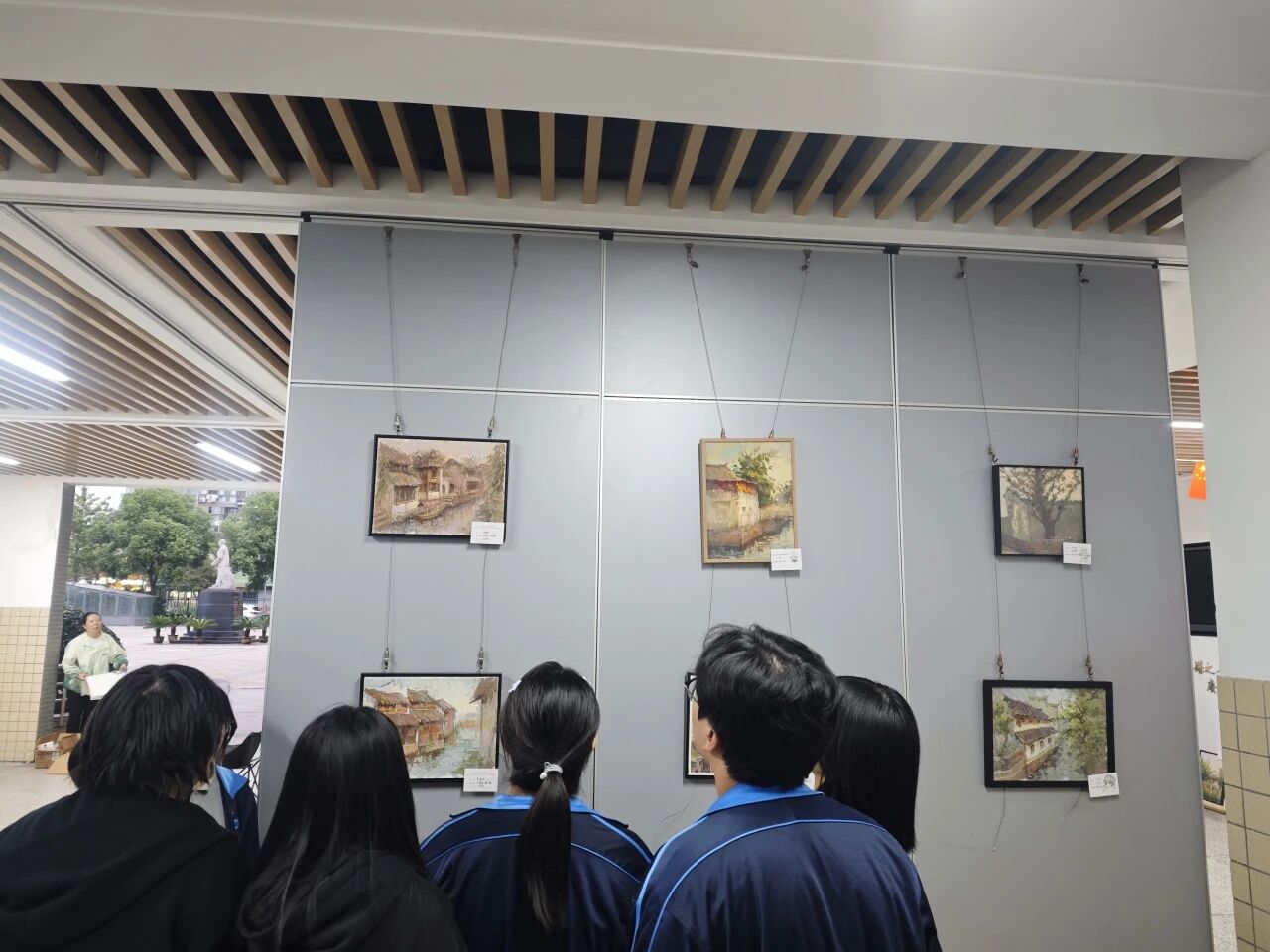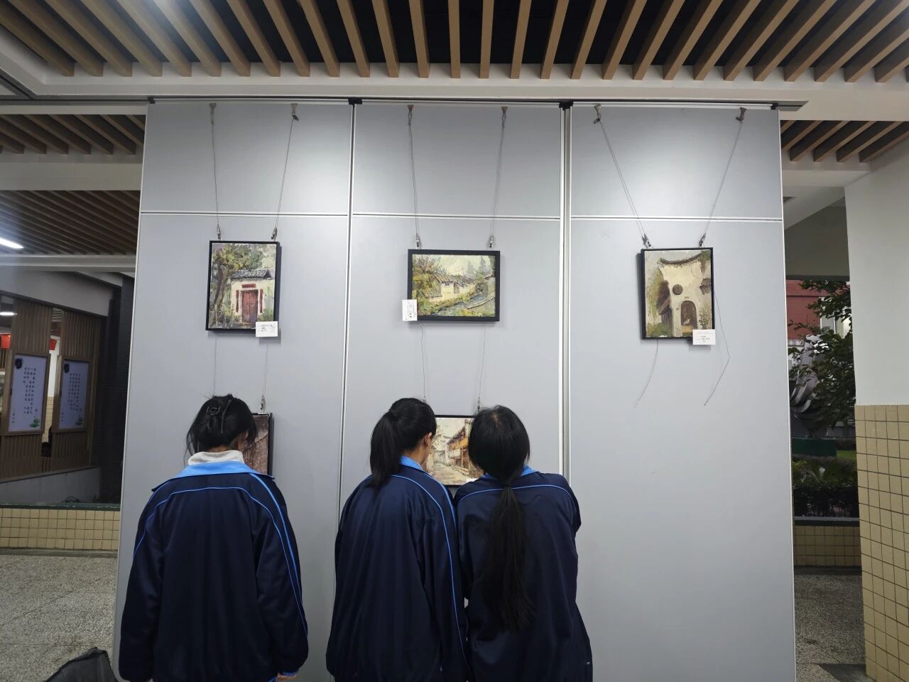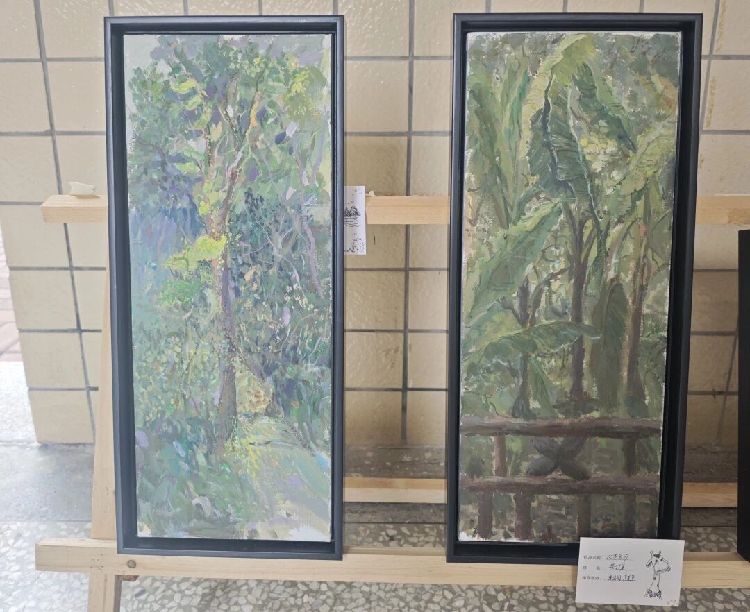 艺术长廊内,百余幅色彩斑斓、风格各异的写生作品琳琅满目,从古朴沧桑的古镇街巷到生机勃勃的自然景致,每一幅画作都凝聚着学生们对景物的细腻观察与对绘画艺术的执着追求,吸引了众多师生驻足观赏。