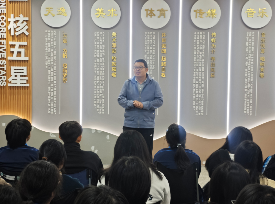 当前,高三美术生已步入联考冲刺的紧要关头。颁奖仪式后,黄卫国副校长发表了联考动员讲话。他勉励同学们,在接下来的四十多天集训中,要保持平和心态,勇于面对挑战,以专注和沉稳应对备考中的各种变化,坚信自我,让每一笔、每一划都彰显出自己的真实水平与艺术潜力。“学校永远是你们坚强的后盾,老师永远是你们最信赖的伙伴。”黄校长的话语温暖而有力,为同学们注入了强大的精神动力。
