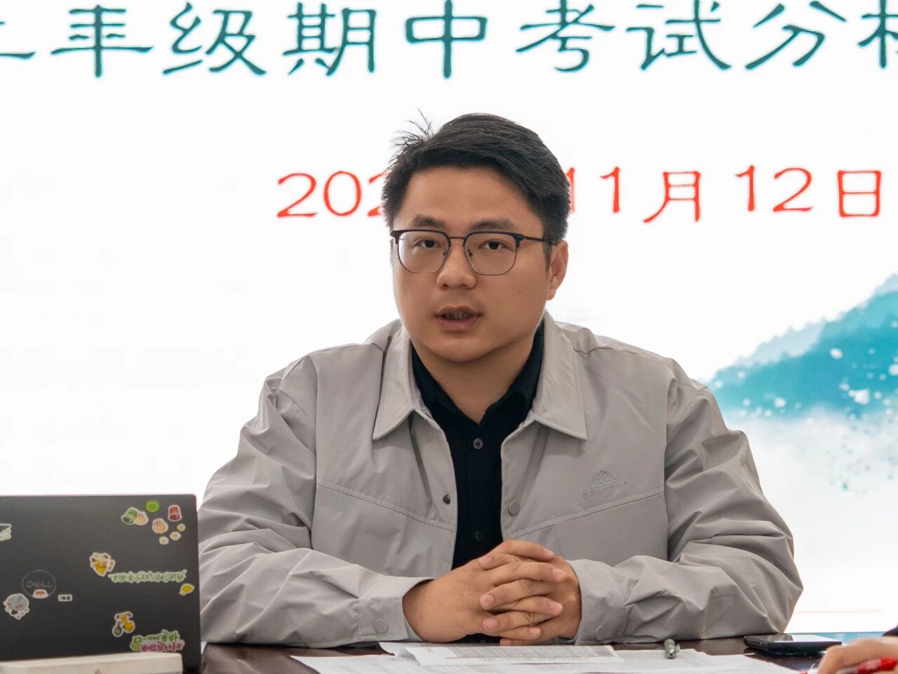 本次考试采用嘉兴市八校联考试卷。年级副组长孙毓斌系统梳理了各学科增量分析、班级成绩对比及月考与期中考变化等多维度数据,从横向与纵向两个层面展开全面剖析:既客观比较了联考中各学科的表现,又细致分析了特控线与一段线的分布情况;同时结合开学以来各班成绩变化趋势,对持续进步的班级及任课教师予以表扬,充分肯定他们在教学方法与班级管理方面的有效经验。