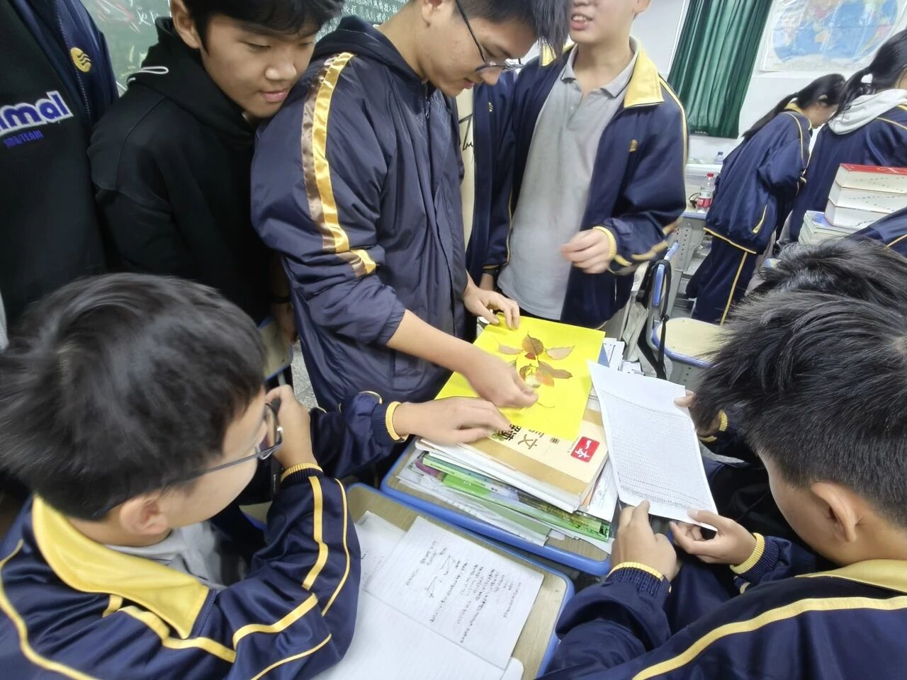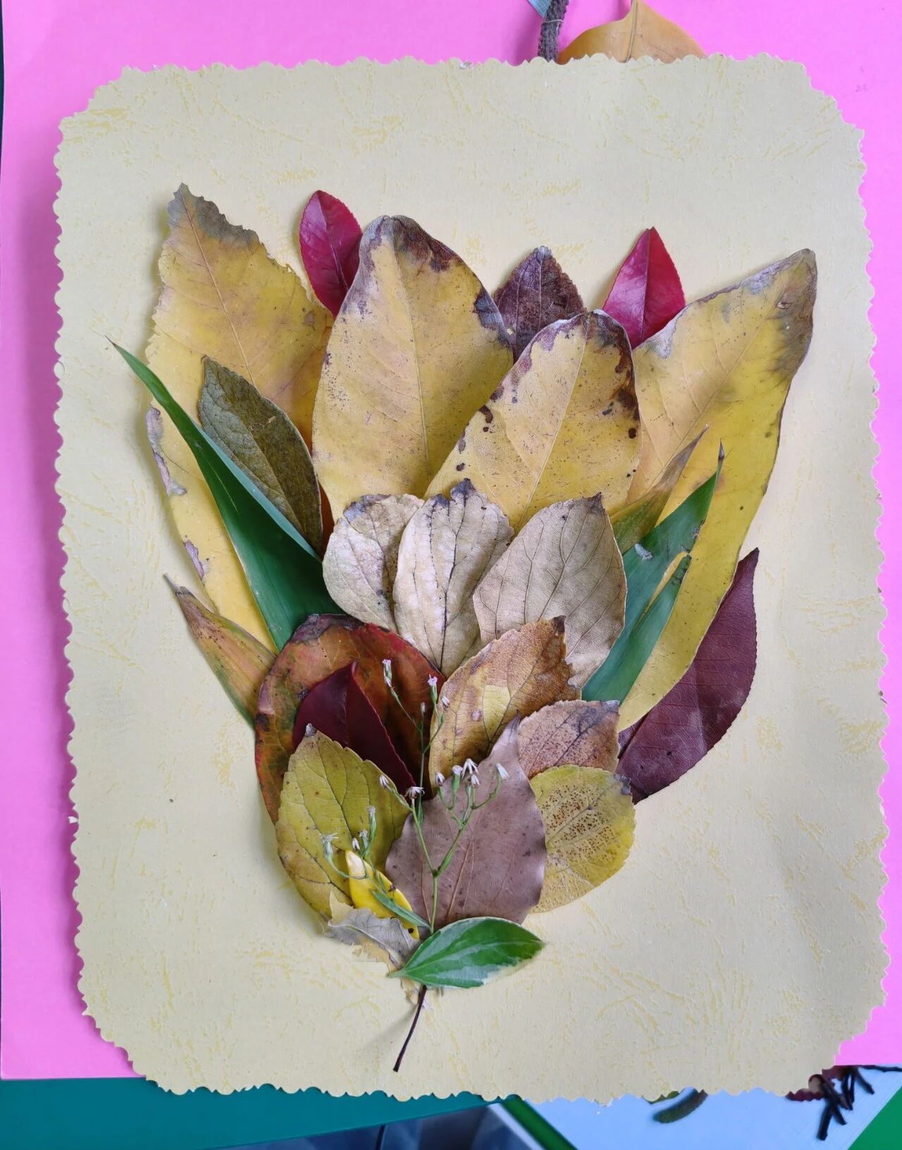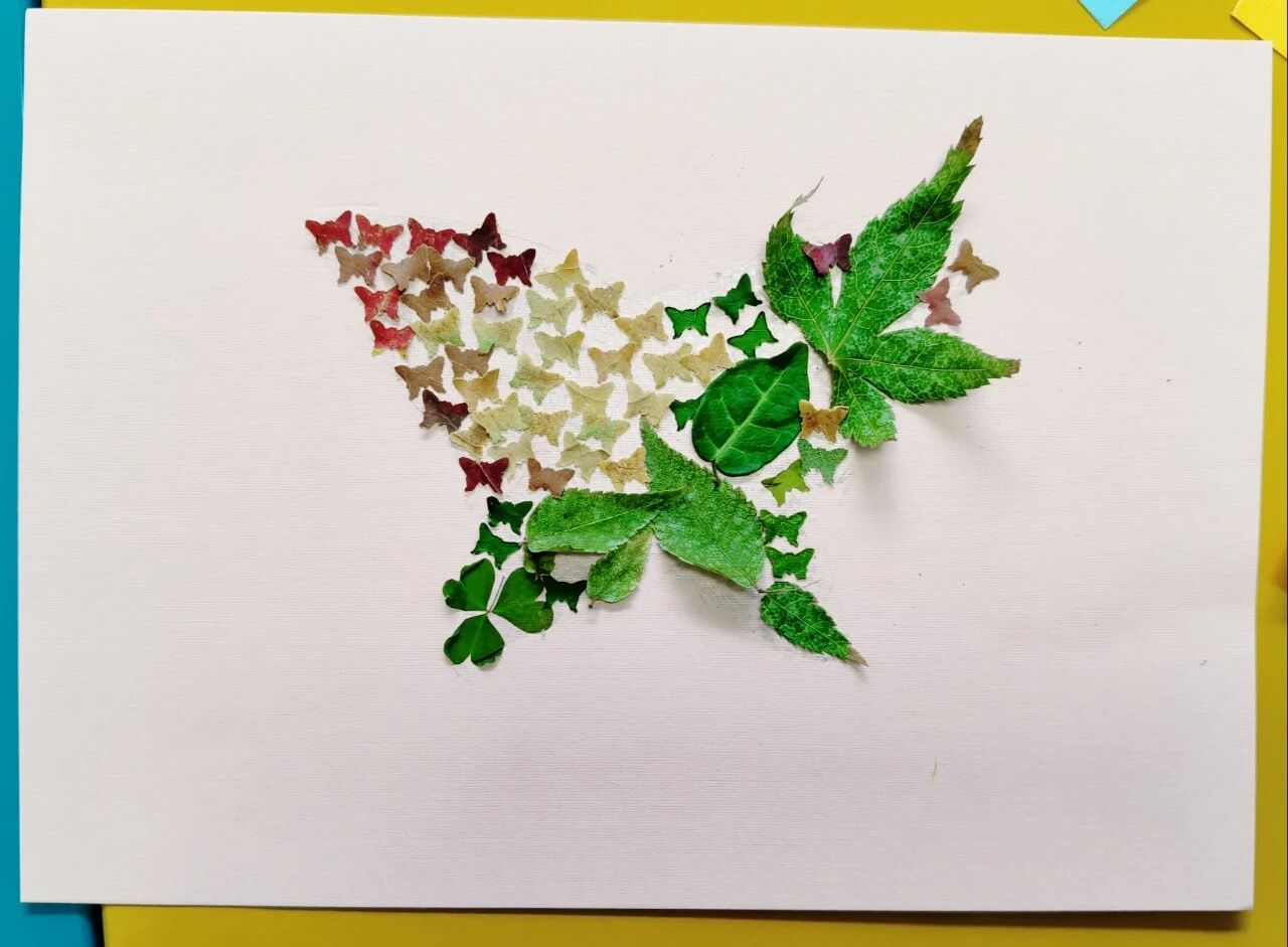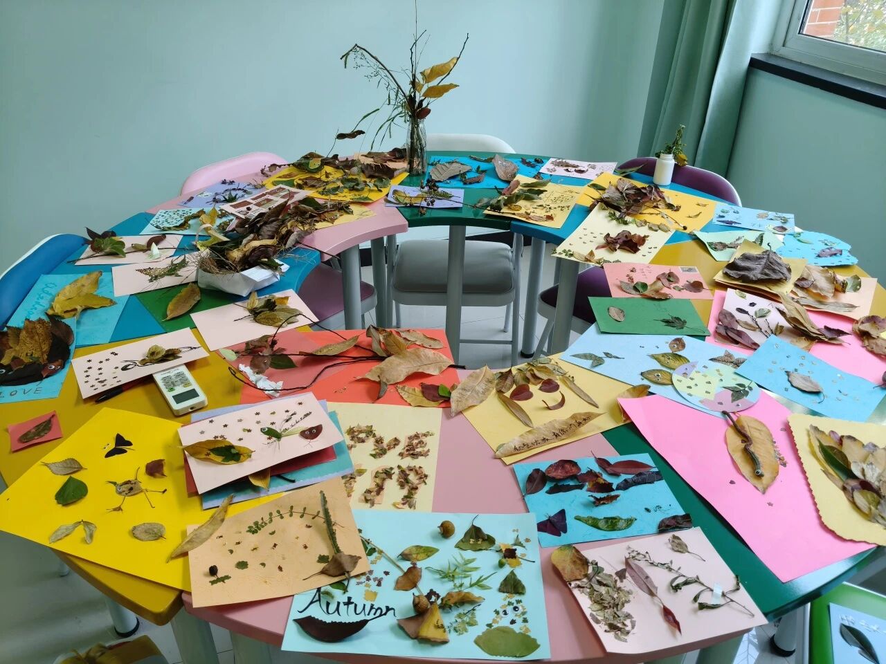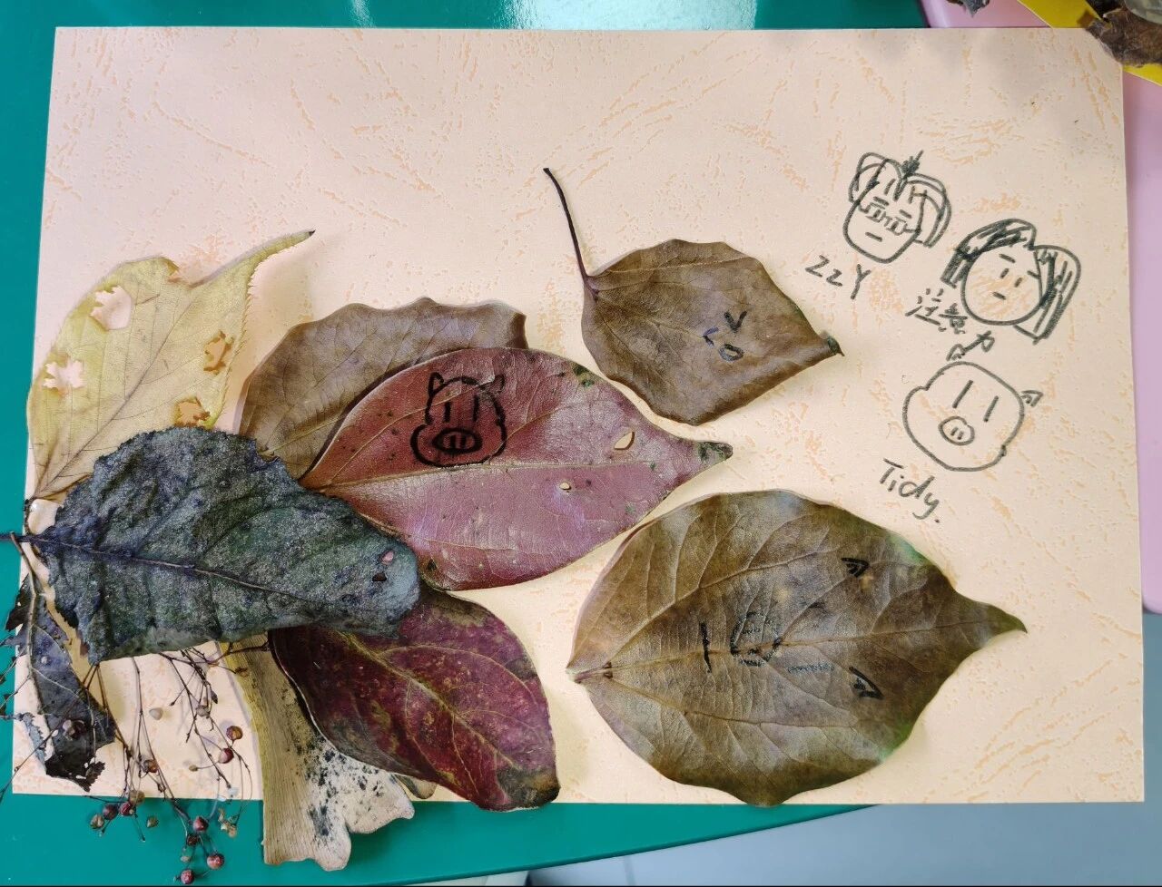 活动聚焦学生心理健康与全面发展需求,分阶段有序推进。活动伊始,通过简短的感官冥想环节引导学生沉静身心——伴着轻柔音乐,同学们闭眼感受秋风触感、落叶声响与空气里的秋意,在慢节奏中拉近与自然的距离,为后续实践奠定情感基础。随后的“寻秋·自然收藏家”环节,学生以小组为单位在指定区域内捡拾秋叶、枝丫、果实等自然物,全程严守“只拾不摘、有序轻行”约定,在弯腰俯身间培养观察力与文明素养,收获发现自然之美的乐趣。返回教室后,各小组将收集的素材进行拼贴创作,用斑斓秋叶、错落枝丫搭配创意构思,诠释对秋天的感悟:有的作品展现“秋日盛景”传递对自然的赞叹,有的以枝丫配文字写下“沉淀成长”的感悟,有的融入创意寄托生活期许。创作过程中,学生分工协作、分享想法,在交流中增进默契,有效释放学习压力。