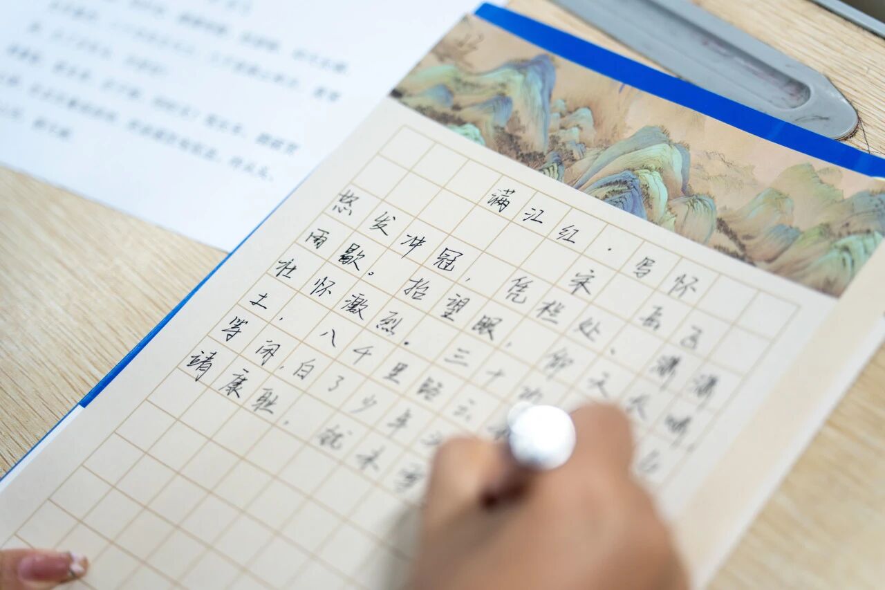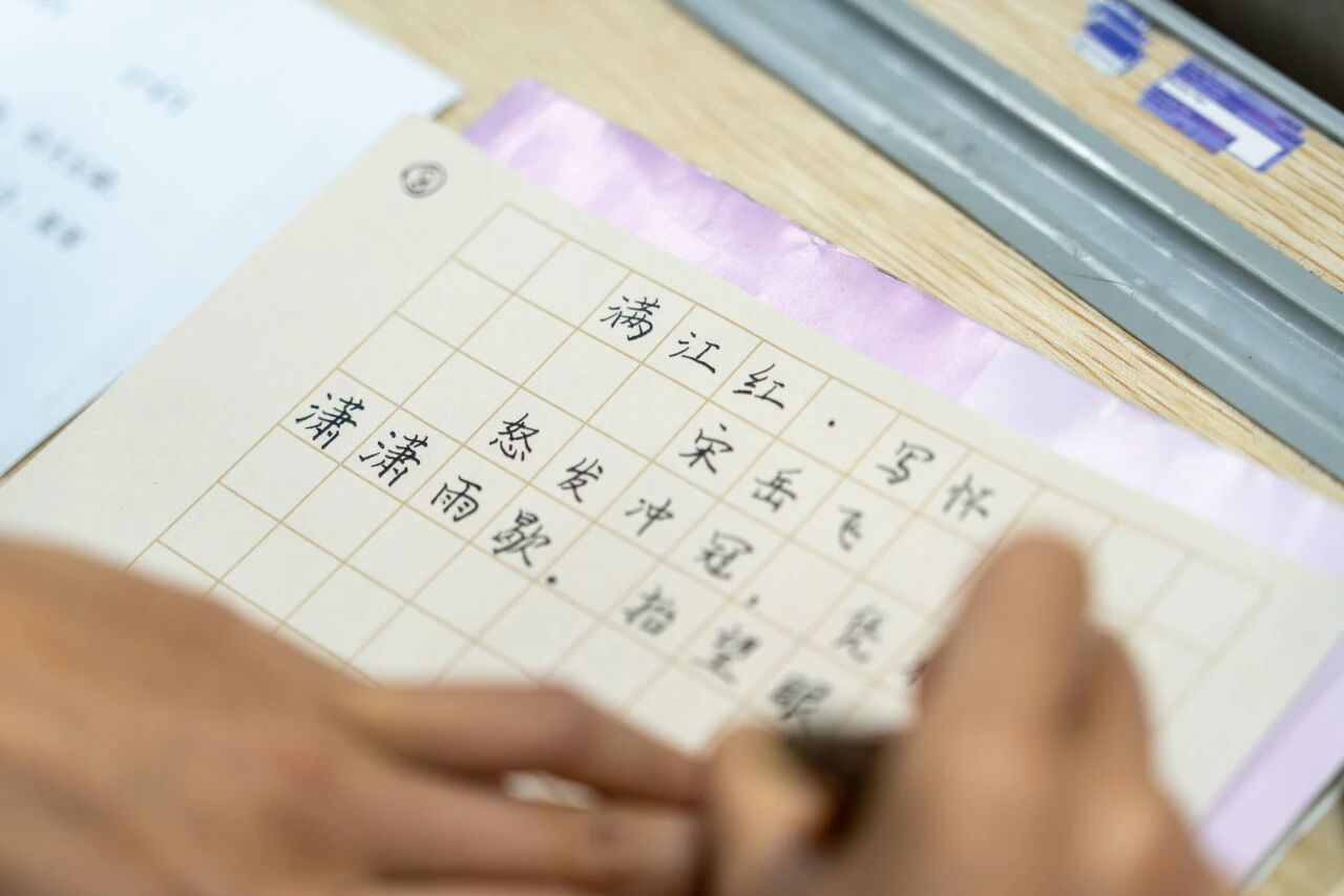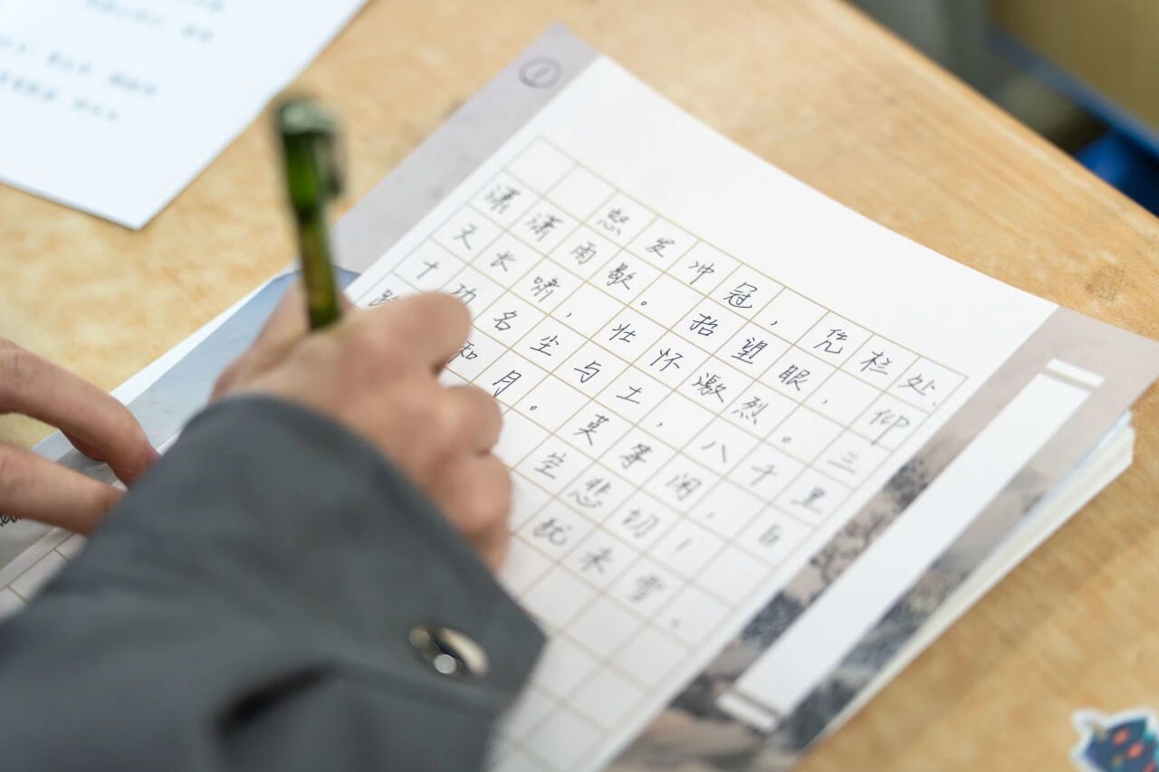 硬笔字比赛现场洋溢着庄重而热烈的竞技氛围。教师们凝神静气、专注书写,一点一横见严谨,一撇一捺显初心。书写内容选取经典诗词《满江红》,教师们在规范工整的基础上,或笔力遒劲,或清秀俊逸,展现出扎实的书写功底和良好的精神风貌。