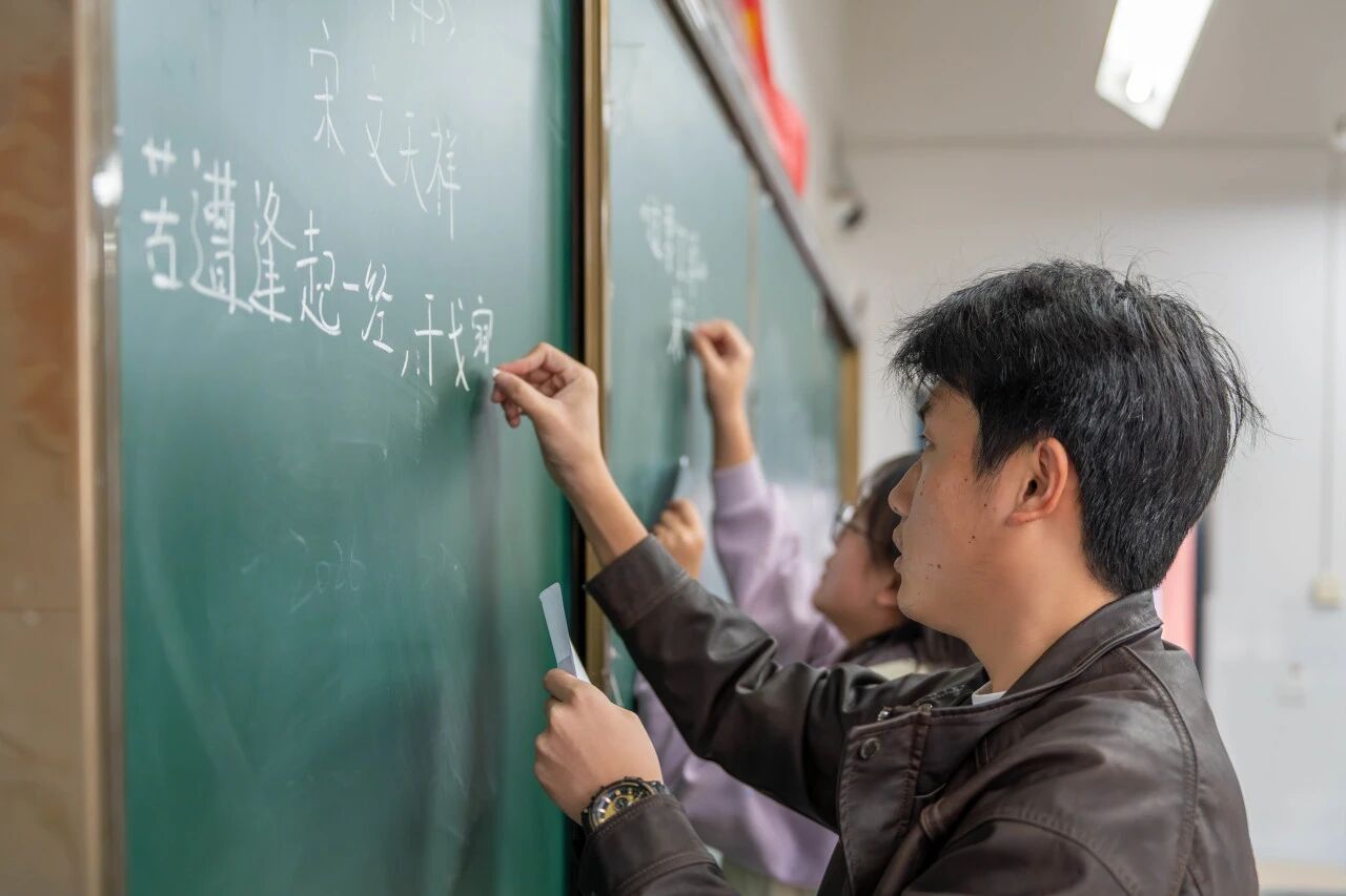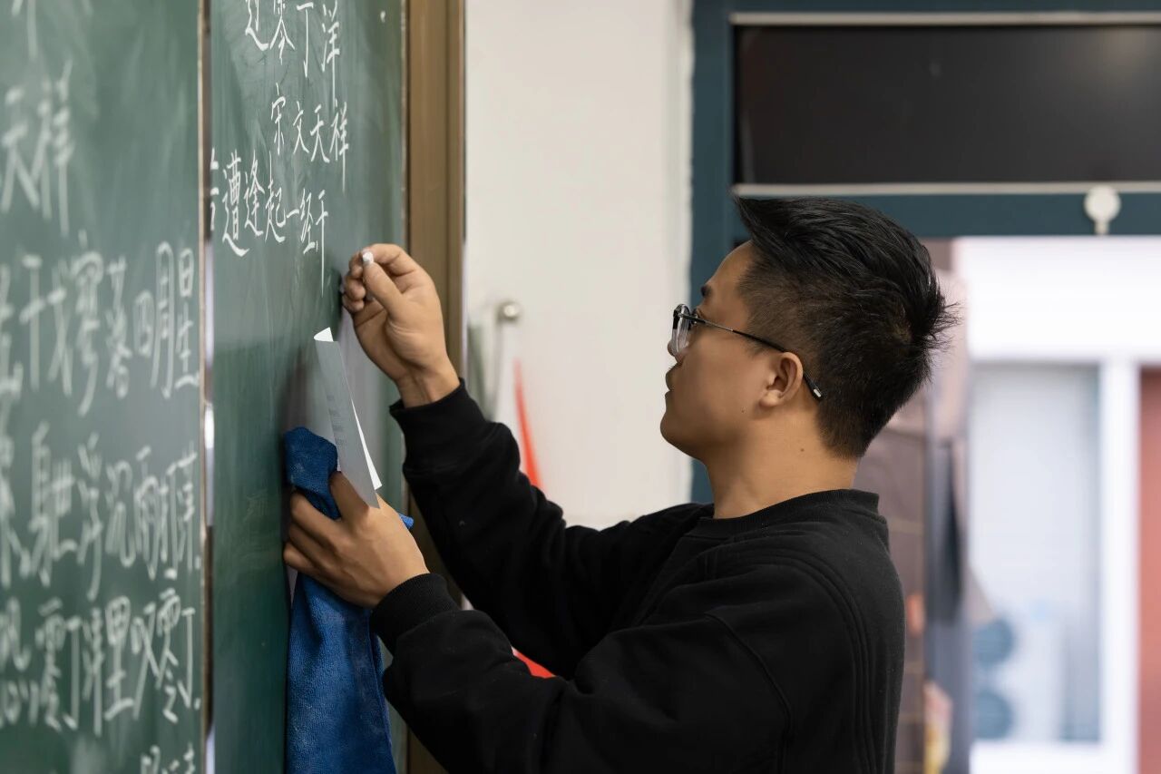 粉笔字赛场上,教师们依次登台,以黑板为纸,以粉笔为媒,在黑板上认真书写。他们布局合理、运笔流畅,作品或刚健有力,或清秀工整,每一笔每一画,展现出教师扎实的板书基本功和严谨从教的态度,凝聚着教师对教学的热爱与执着。字里行间,既见教学智慧,又显育人情怀。