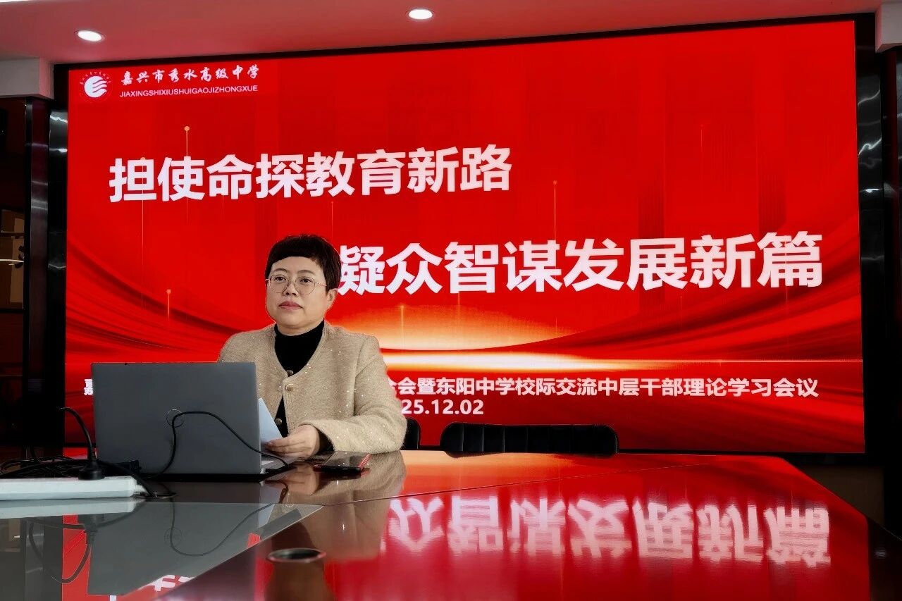 为深入贯彻党的二十届四中全会精神,借鉴先进办学经验,提升教育教学质量,12月2日,嘉兴市秀水高级中学召开“担使命探教育新路 凝众智谋发展新篇”中层干部理论学习会议。会议围绕精神学习、考察交流、工作部署三大板块,凝聚共识,明确方向。秀水学院党委委员、纪委书记,秀水高中校长崔占鸿出席,全体校级领导及中层干部参加会议。