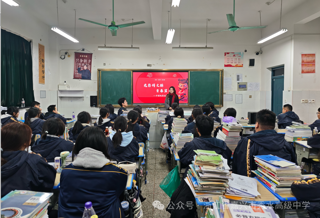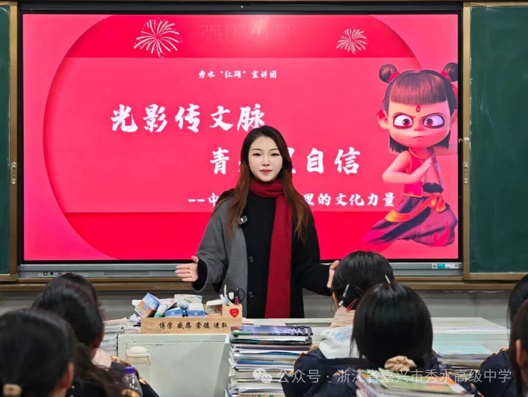 2025年12月29日,秀水“红砖”宣讲员王雨鉴老师,走进高一年级课堂,给同学们带来了一场题为“光影传文脉·青春铸自信”的思政主题宣讲。活动紧扣学校“大思政进行时”系列主题,以光影为媒、以青春为笔,引领学生探寻文化自信的深层内涵,感悟中华文化走向世界的时代价值。