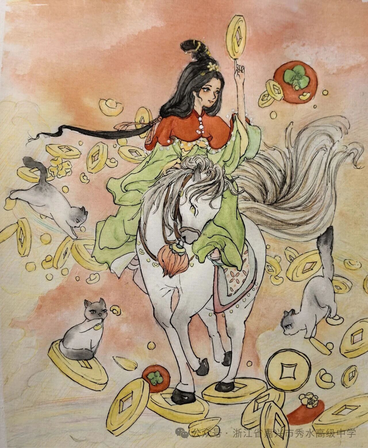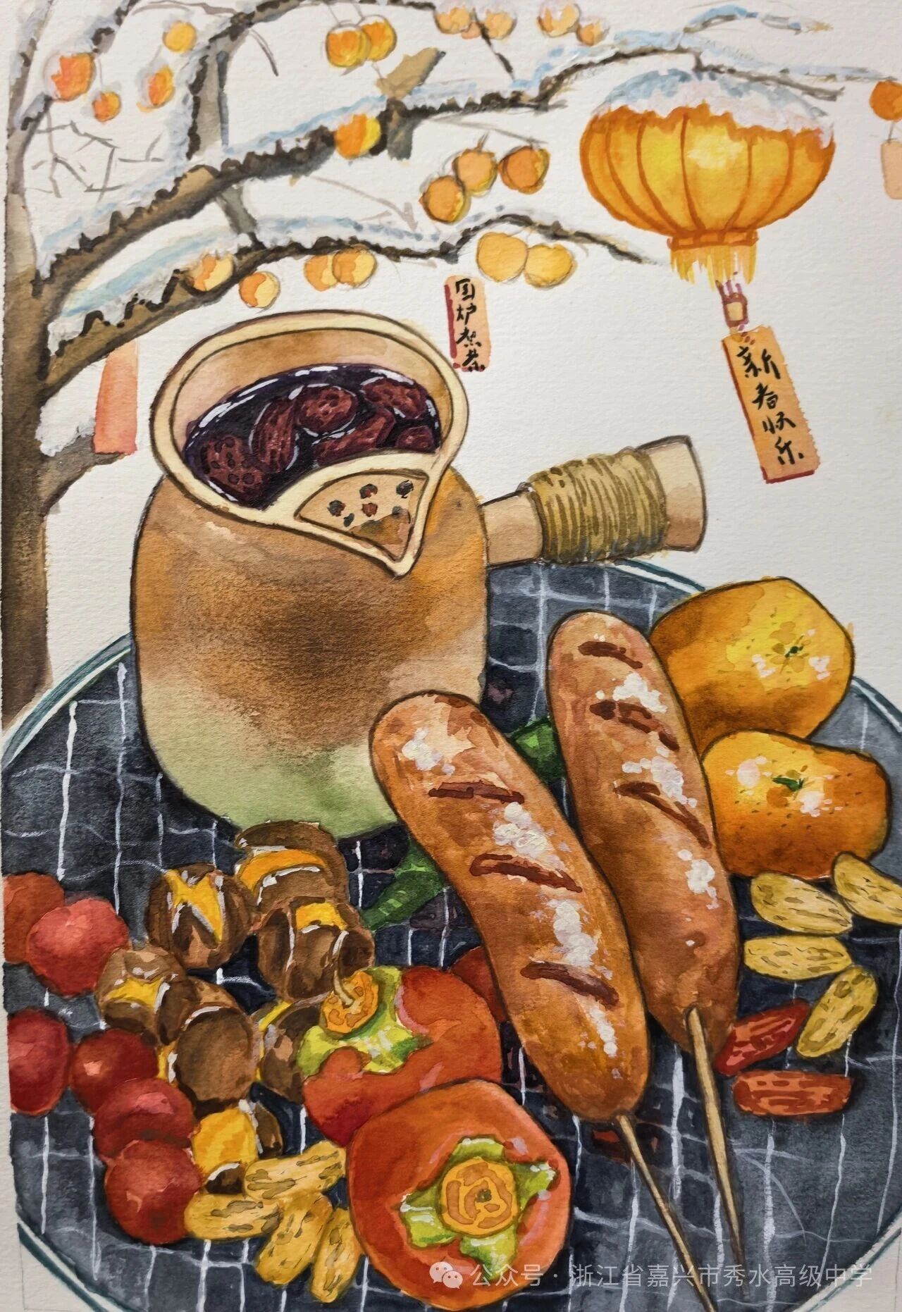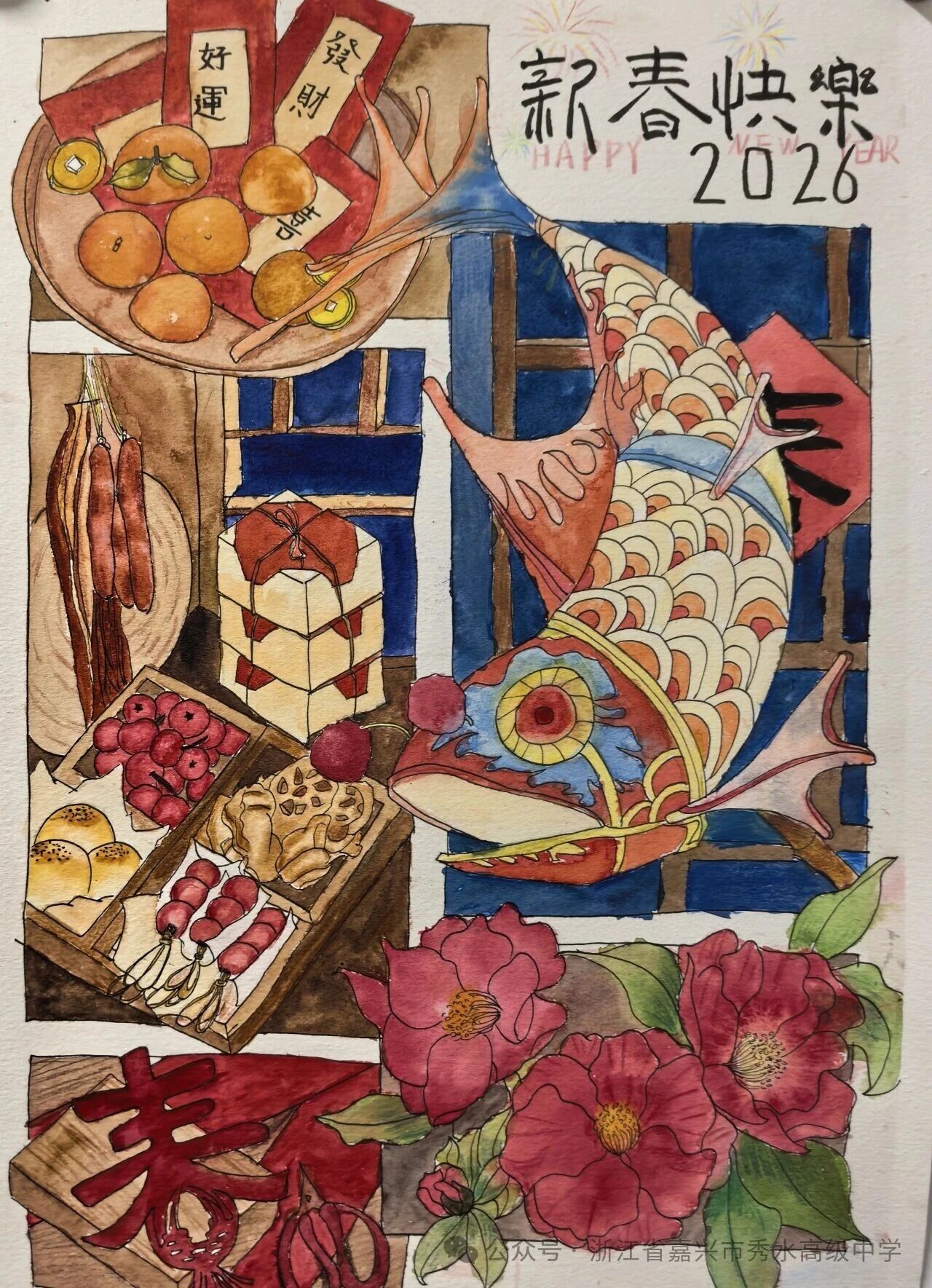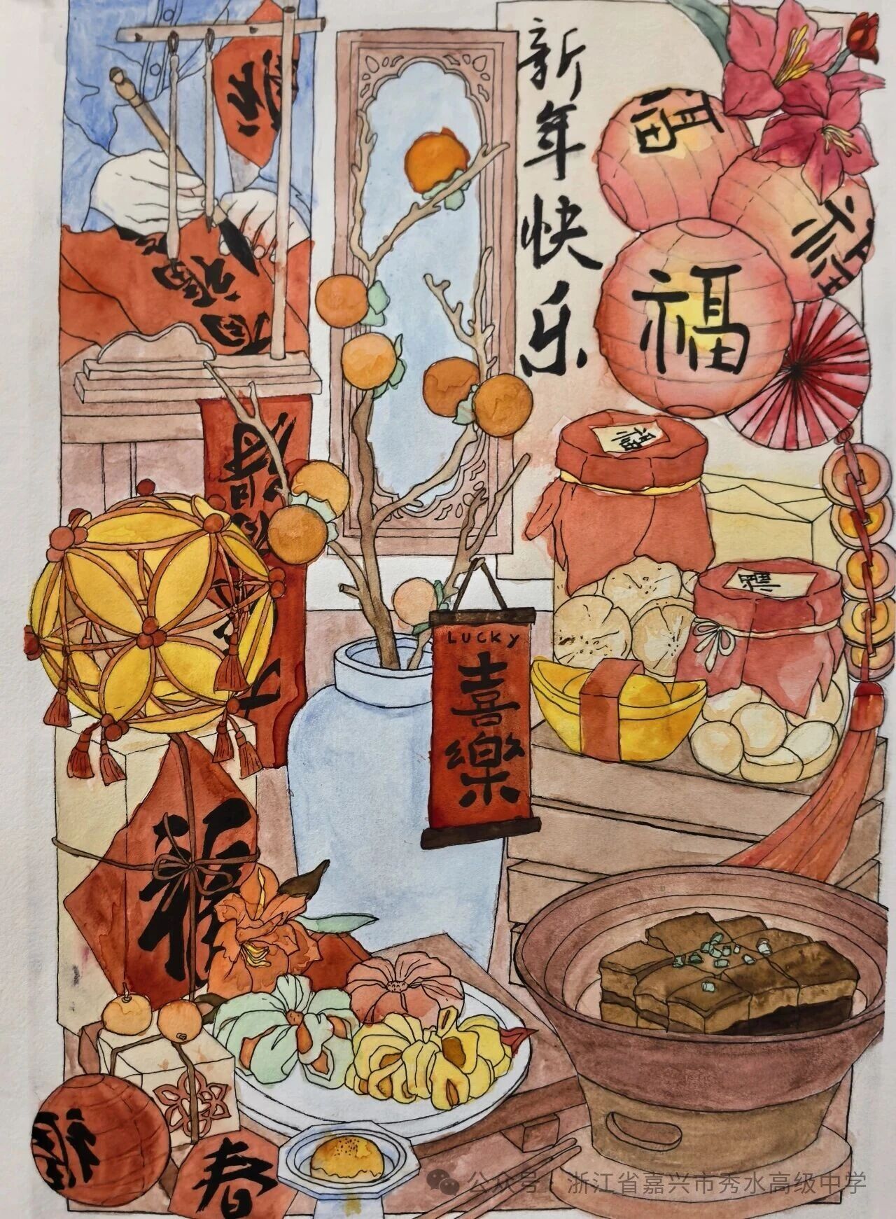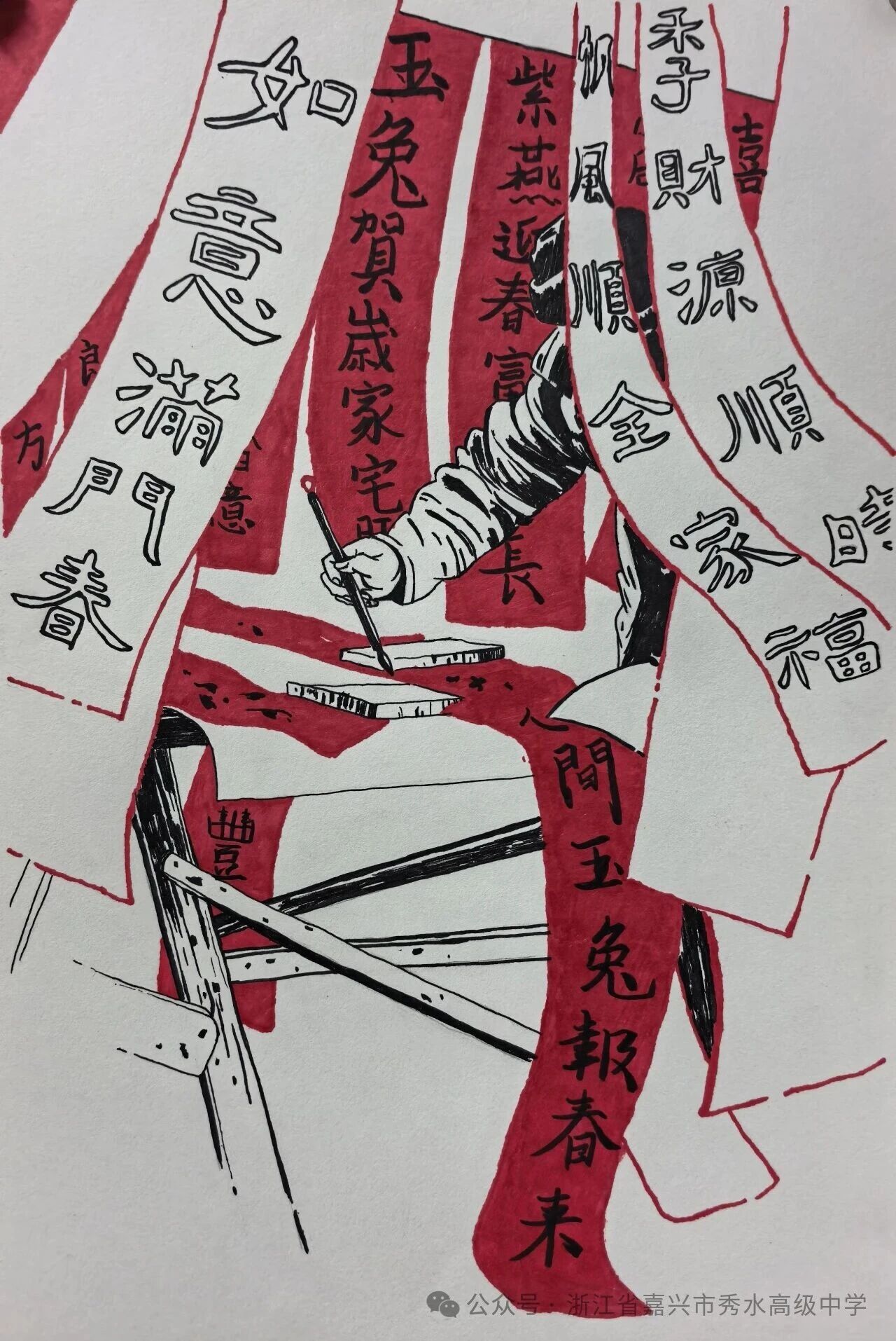 新春将至,岁寒情暖。在丙午马年的钟声即将敲响之际,秀水高级中学美术班的同学们,以画笔为舟,以色彩为帆,在尺素之间勾勒出他们对传统年味的独特感知,对新春佳节的深情礼赞。
