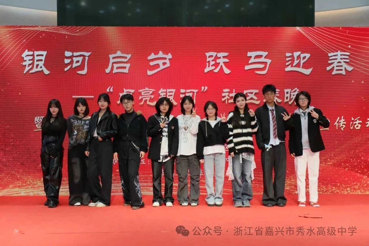 1月31日下午,嘉兴市秀水高级中学秀知音舞蹈社团携两支风格迥异的舞蹈作品,惊艳亮相“银河启岁 跃马迎春—点亮银河”社区春晚舞台,以灵动舞姿传递青春力量,彰显学校艺术特色教育成果。
