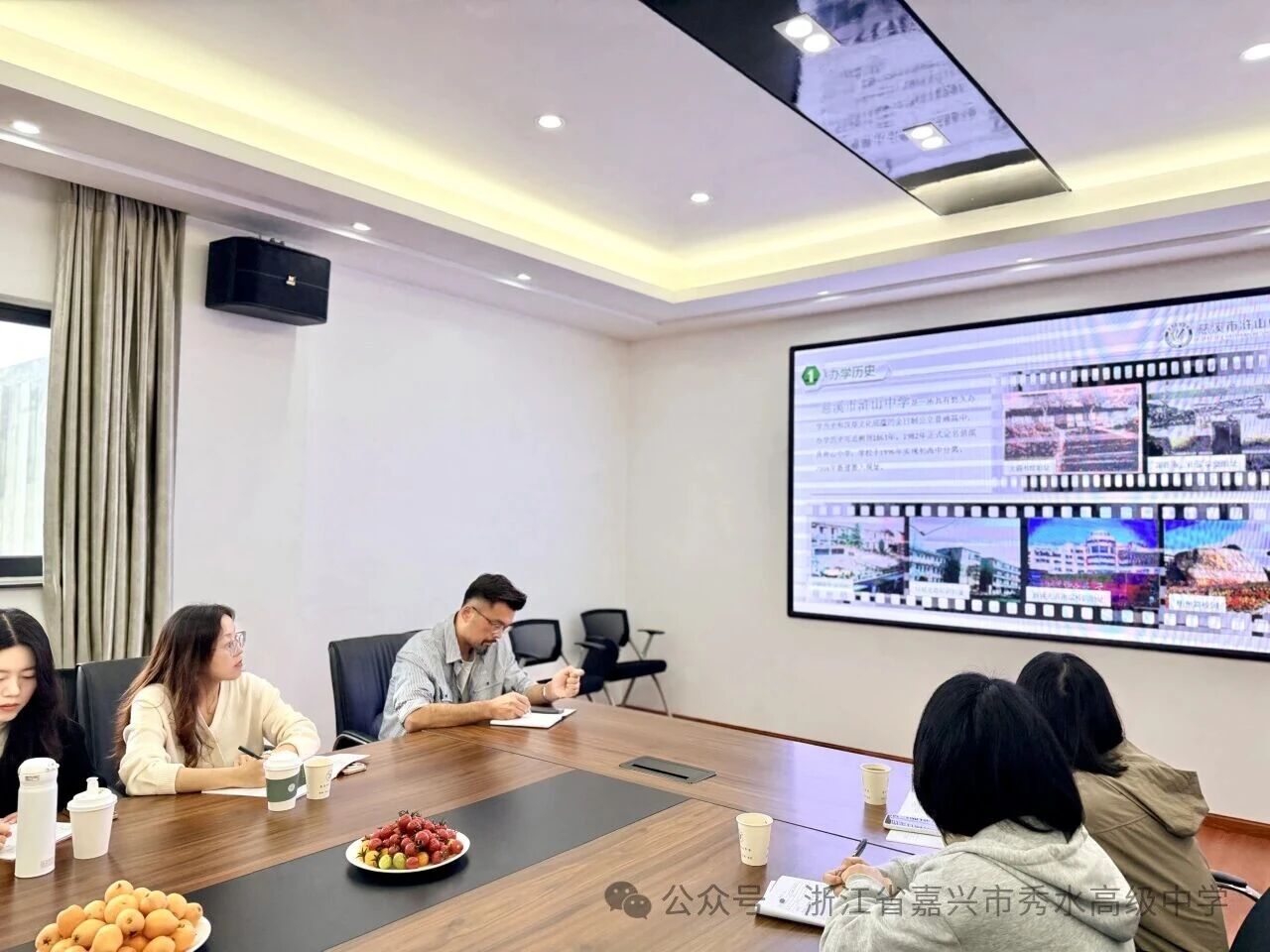 浒山中学姚校长详细阐述了学校的办学历史、所获综合荣誉、特色校园文化及办学思想,重点分享了学校在教育教学改革创新方面的探索,介绍了“走、迈、建、探、开”五步举措在培养学生综合素质、促进学生全面发展中的具体应用与成效。